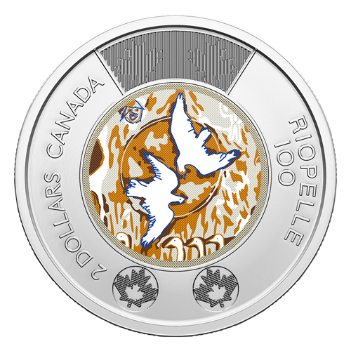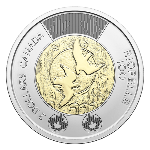 Features the transitional effigy. The 2023 100th Anniversary of the Birth of Jean Paul Riopelle coin is one of the few 2023-dated circulation coins to feature the transitional effigy and be destined for general circulation.